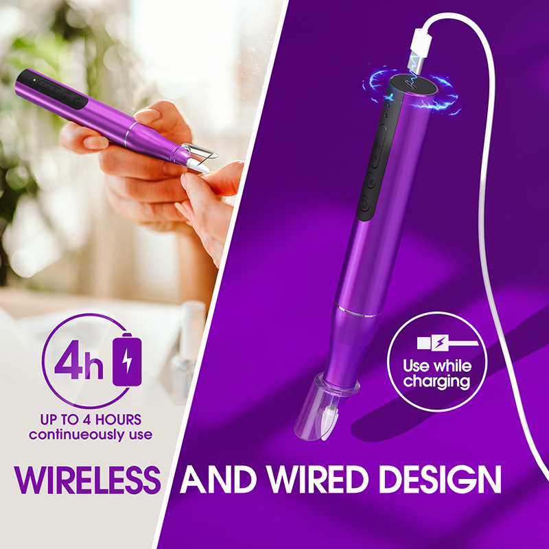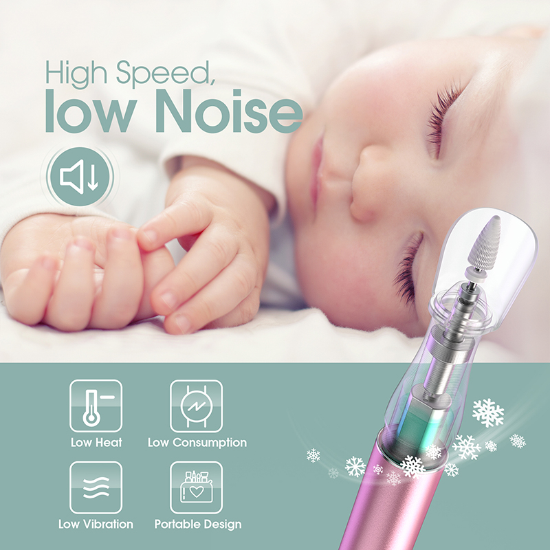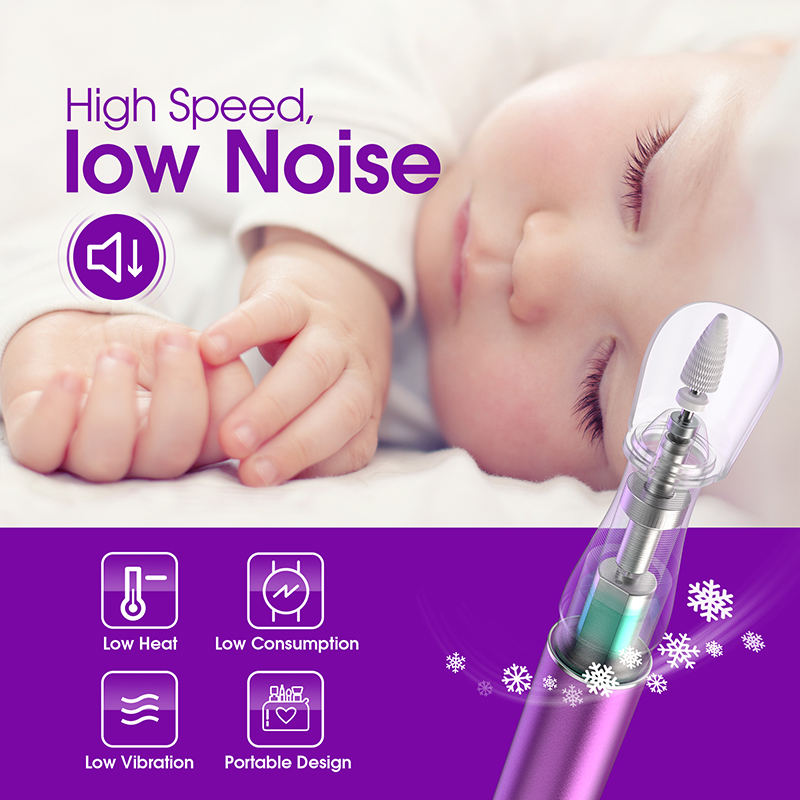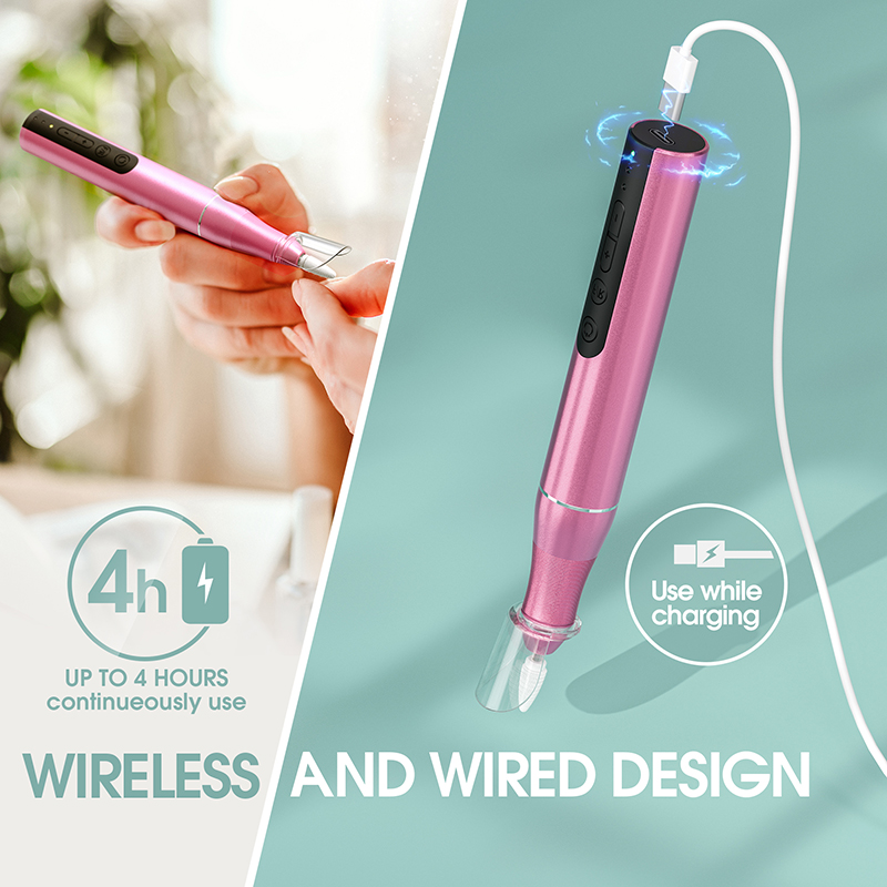 Deze elektrische nagelboormachine is voorzien van de nieuwste aluminium behuizing met anti-vibratieontwerp, dat geluid en hitte effectief kan verminderen bij het slijpen van nagels, zodat u niemand stoort tijdens het polijsten van uw nagels. Het ergonomische uiterlijk van de pen zorgt voor een comfortabele antisliphandgreep en zorgt ervoor dat u gelnagels gemakkelijk kunt verwijderen.