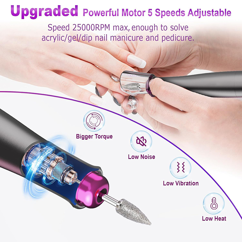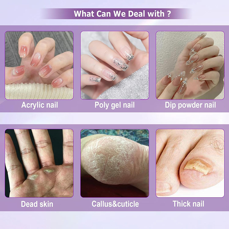 Elektrische nagelboormachine Verbeterde krachtige motor is perfect voor al uw manicure- en pedicurebehoeften, inclusief het verwijderen van acrylnagels, polygelnagels, keversgel, dippoedernagels, nagelriemen, dode huid, eelt en dikke nagels.