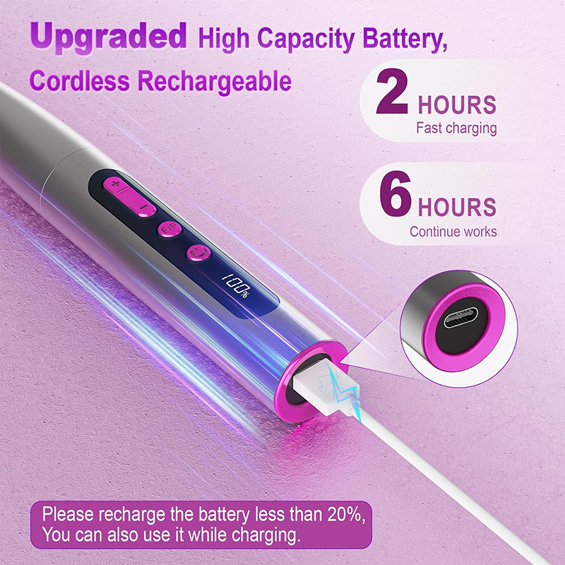 elektrische nagelboor Verbeterde batterij met hoge capaciteit, 2 uur Snel opladen en 6 uur Doorgaan met werken. Elektrische nagelvijl is geschikt voor uw USB-stroomadapter, laptop, mobiele stroomvoorziening etc. Als het vermogen van de accu-nagelboor minder dan 20% is, kunt u hem ook tijdens het opladen gebruiken.