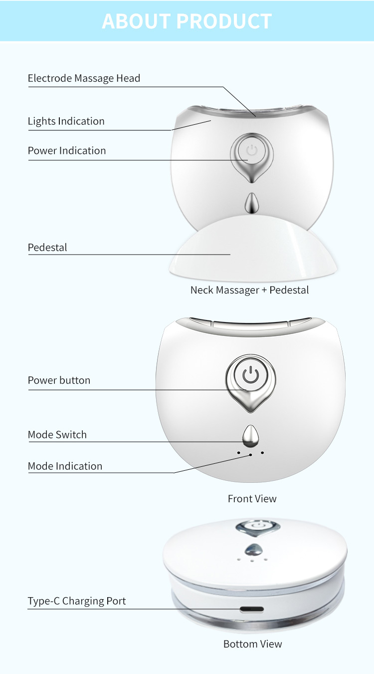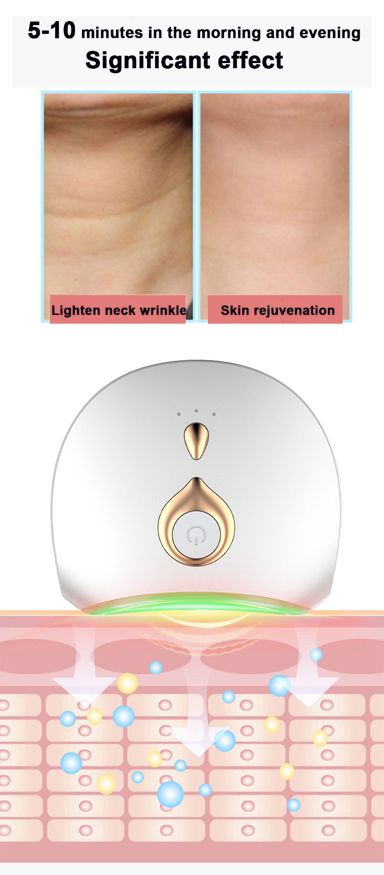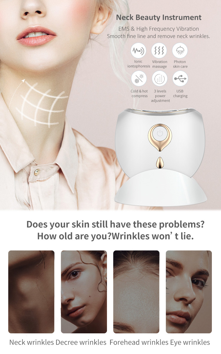 EMS en hoogfrequente trillingen, maken fijne lijntjes glad en verwijderen nekrimpels