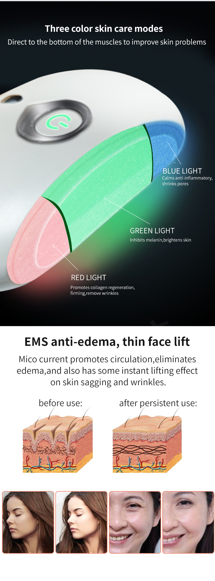 Drie kleuren huidverzorgingsmodi, direct naar de onderkant van de spieren om huidproblemen te verbeteren