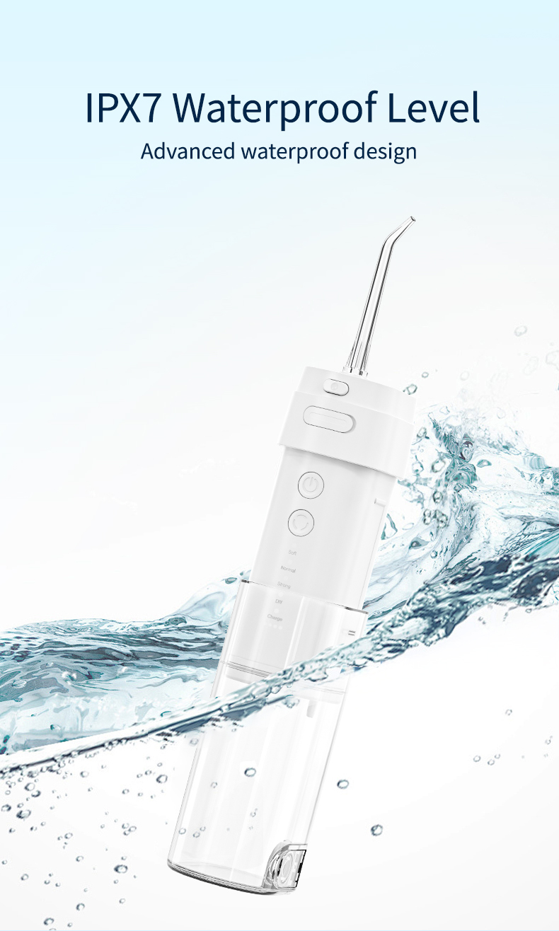 Diepe reiniging met sterke druk: De waterflosser maakt gebruik van de nieuwste pulstechniek en biedt 4 standen met een drukbereik tussen 30-90 Psi en een pulsfrequentie van 1400-1800 keer/minuut. De krachtige waterstraal reinigt 99,99% van de spanning op de tanden en is speciaal ontworpen voor parodontitis en beugels.