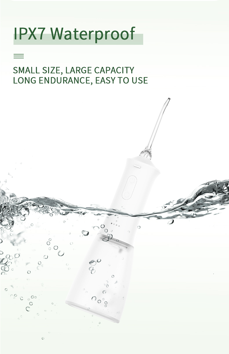 Onze draadloze watertandenborstel beschikt over een superieure waterdichtheid, waardoor hij gemakkelijk schoon te maken is en veilig te gebruiken is tijdens het douchen.