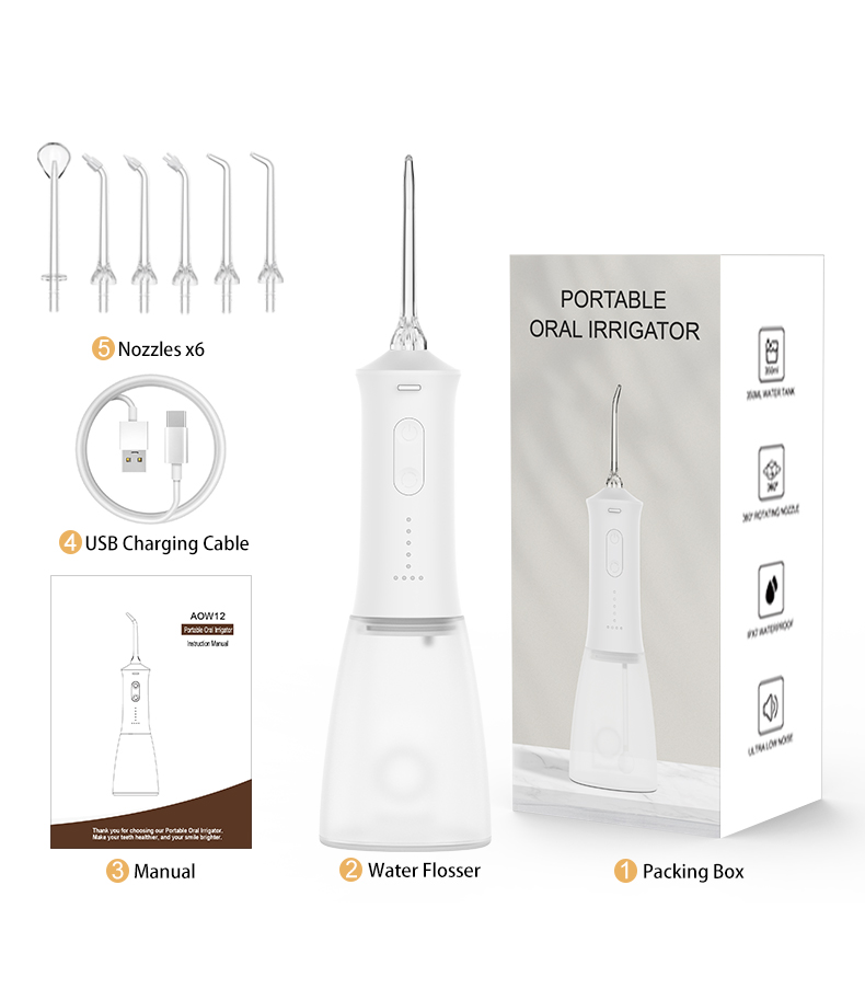Verpakking: 1 waterflosserbody + 5 tips + 1 USB-kabel + 1 gebruikershandleiding + 1 geschenkdoos.